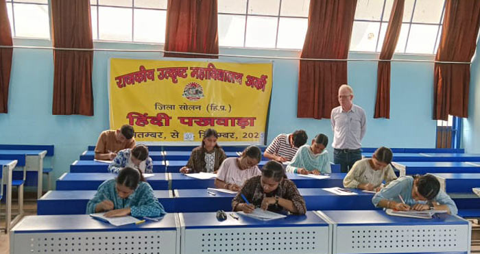 सोलन: राजकीय महाविद्यालय अर्की में चल रहे हिंदी पखवाड़े के तहत मंगलवार को एक निबंध प्रतियोगिता का आयोजन किया गया। इसका विषय “पहाड़ों के दरकने से जन जीवन पर मंडराते खतरे” था। प्रतियोगिता में कॉलेज के लगभग सभी विद्यार्थियों ने हिस्सा लिया और इस गंभीर मुद्दे पर अपने विचार रखे। यह कार्यक्रम 14 सितंबर से 30 सितंबर तक चलने वाले हिंदी पखवाड़े का हिस्सा है, जिसका आयोजन हिंदी विभाग के प्रभारी डॉ. राजन तनवर की देखरेख में किया जा रहा है। इस अवसर पर कॉलेज की प्राचार्या श्रीमती सुनीता शर्मा ने छात्रों को संबोधित किया। उन्होंने कहा कि प्राकृतिक आपदाएं अक्सर मानवीय गलतियों का नतीजा होती हैं, यह कोई दैवीय प्रकोप नहीं है। उन्होंने विद्यार्थियों से अपील की कि वे प्रकृति के संरक्षण के लिए खुद आगे आएं और अपने आसपास के लोगों को भी इसके लिए जागरूक करें।