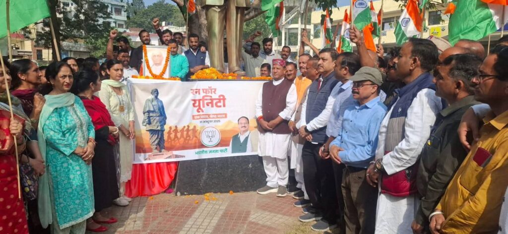 “रन फॉर यूनिटी”, नाहन बस स्टैंड स्थित बाबा साहेब डॉ. भीम राव अम्बेडकर जी परिसर से प्रारम्भ होकर शहीद स्मारक स्थल पर संपन्न हुई। सांसद सुरेश कश्यप, विधायक पोंटा साहिब एवं प्रभारी सुख राम चौधरी, विधायक रीना कश्यप, जिला परिषद अध्यक्ष सीमा कन्याल पूर्व विधायक बलदेव तोमर, जिला अध्यक्ष धीरज गर्ग, बलदेव भंडारी, विनय गुप्ता, नारायण सिँह चौहान, जिला एवं मण्डल भाजपा पदाधिकारी, पार्षदगण, पांचो विधानसभा क्षेत्रों के भाजपा कार्यकर्ता सहित सेंकड़ों युवा युवा इस आयोजन में शामिल रहे।
