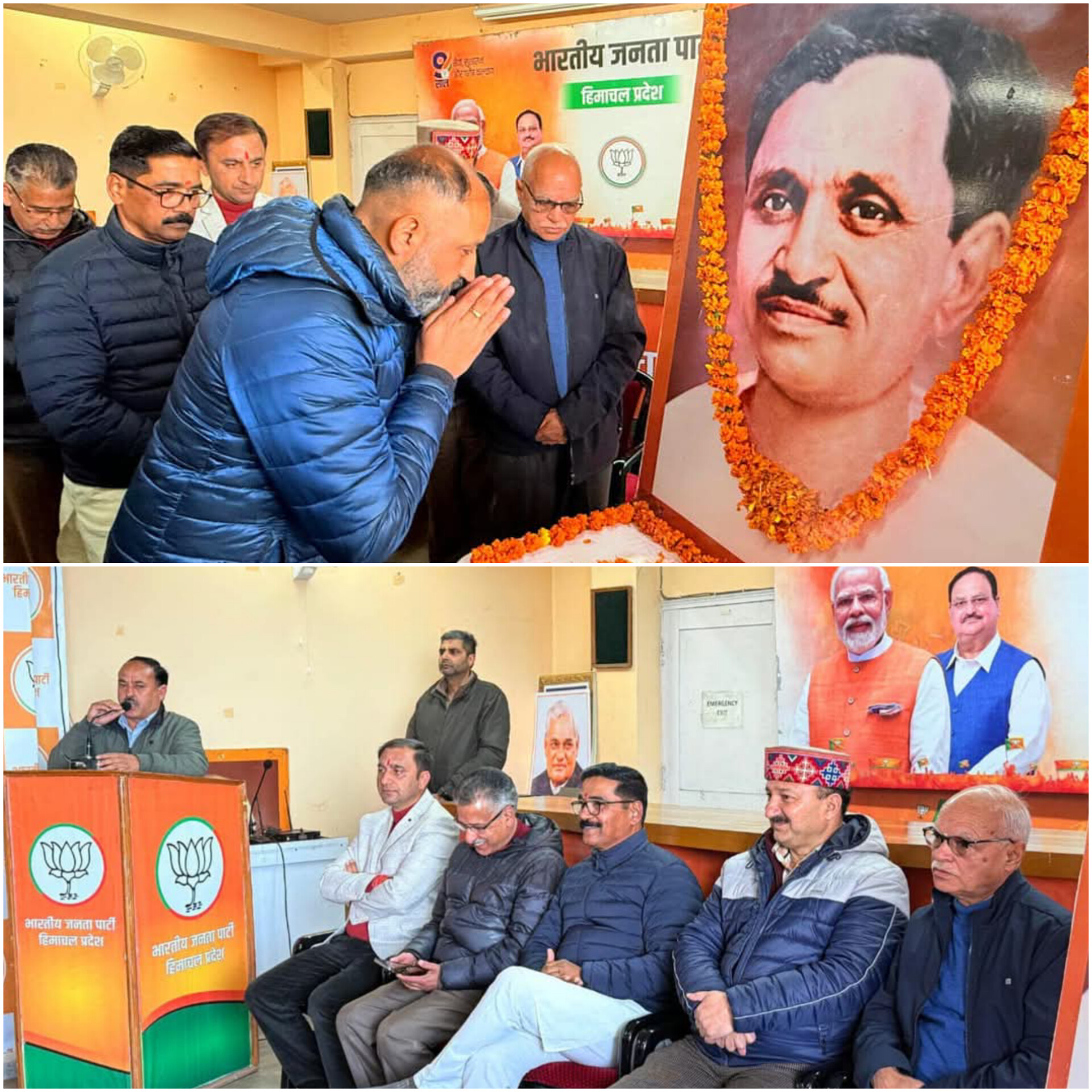 लाइव हिमाचल/शिमला : भारतीय जनता पार्टी के वैचारिक अधिष्ठाता पंडित दीनदयाल उपाध्याय की पुण्यतिथि पर भाजपा मुख्यालय में प्रदेश संगठन महामंत्री सिद्धार्थन, प्रदेश उपाध्यक्ष संजीव कटवाल, कोषाध्यक्ष कमलजीत सूद, मीडिया प्रभारी कर्ण नंदा, प्रवक्ता बलबीर वर्मा, प्यार सिंह कंवर, जिला अध्यक्ष केशव चौहान, मण्डल अध्यक राजीव पंडित द्वारा उनकी प्रतिमा पर पुष्पांजलि अर्पित कर श्रद्धांजलि दी। इस उपलक्ष्य पर प्रदेश उपाध्यक्ष संजीव कटवाल ने कहा कि आज एकात्म मानववाद के प्रणेता पं. दीनदयाल उपाध्याय का स्मृति दिवस है, उनकी मृत्यु 11 फ़रवरी, 1968 को हुई थी। जनसंघ के पितृ पुरुष प. दीनदयाल उपाध्याय एक राज नेता से अधिक एक महा मानव के रूप में लोगों के मन मस्तिष्क में समाए हुए थे। उनके विचारों का अध्ययन करें तो पाएंगे उन्हें सियासत से नहीं अपितु आम आदमी की जिंदगी संवारने की चिंता अधिक थी। उन्होंने इसे कभी छिपाया भी नहीं। वे एक संत स्वभाव और विचारों के राज नेता थे। एकात्म मानववाद के प्रणेता और सादगी की प्रतिमूर्ति उपाध्याय जी मानवता के उत्थान के लिए राजनीति में आए थे। उनका लक्ष्य सांसद, विधायक बनना नहीं था। वे सामाजिक और राजनीतिक जीवन में सत्यनिष्ठा और शुचिता के साथ अंतिम व्यक्ति के सर्वांगीण उत्थान के लिए संकल्पित थे। दीनदयाल उपाध्याय ने कहा था लोकतंत्र केवल बहुमत का राज नहीं। उपाध्याय के मुताबिक लोकतंत्र की मुख्यधारा सहिष्णु रही है। इसके बिना चुनाव, विधायिका आदि कुछ भी नहीं है। सहिष्णुता भारतीय संस्कृति का आधार है। उपाध्याय के विचार आज भी सामयिक है। उपाध्याय के असहिष्णुता के मुद्दे पर विचारों का उनके लेखन में कई जगह जिक्र देखने को मिलता है। उन्होंने कहा था, वैदिक सभा और समितियाँ लोकतंत्र के आधार पर आयोजित की जाती हैं और मध्यकालीन भारत के कई राज्य पूरी तरह से लोकतांत्रिक थे। उन्होंने कहा था, ‘आपने जो कहा मैं उसे नहीं मानता, लेकिन आपके विचारों के अधिकार की मैं आखिरी वक्त तक रक्षा करूंगा। भाजपा के लिए वैचारिक मार्गदर्शन और नैतिक प्रेरणा के स्रोत रहे पंडित दीनदयाल उपाध्याय का जन्म 25 सितंबर, 1916 को उत्तर प्रदेश के मथुरा जिले में हुआ था। कुछ लोगों का मानना है पं. दीनदयाल उपाध्याय का जन्म 25 सितम्बर 1916 को जयपुर जिले में धानक्यारेल्वे स्टेशन पर इनके नाना जी के घर पर हुआ था। इनके नाना श्री चुन्नीलाल जी शुक्ल धानक्यारेल्वे स्टेशन के तत्कालीन स्टेशन मास्टर थे। पंडित दीनदयाल उपाध्याय राष्ट्रीय स्वयंसेवक संघ के विचारक और संगठनकर्ता थे। भारतीय जनसंघ पार्टी की स्थापना साल 1951 में हुई थी। अपने राजनीतिक जीवन में वे भारतीय जनसंघ पार्टी के अध्यक्ष भी रहे। सनातन विचारधारा से संबंध रखने वाले दीन दयाल सशक
