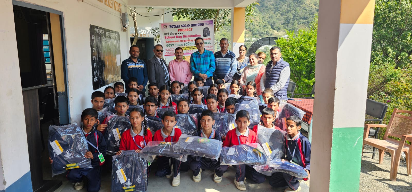 रोटरी मिड टाउन सोलन ने दंघील स्कूल में बच्चों को बांटे स्कूल बैग…