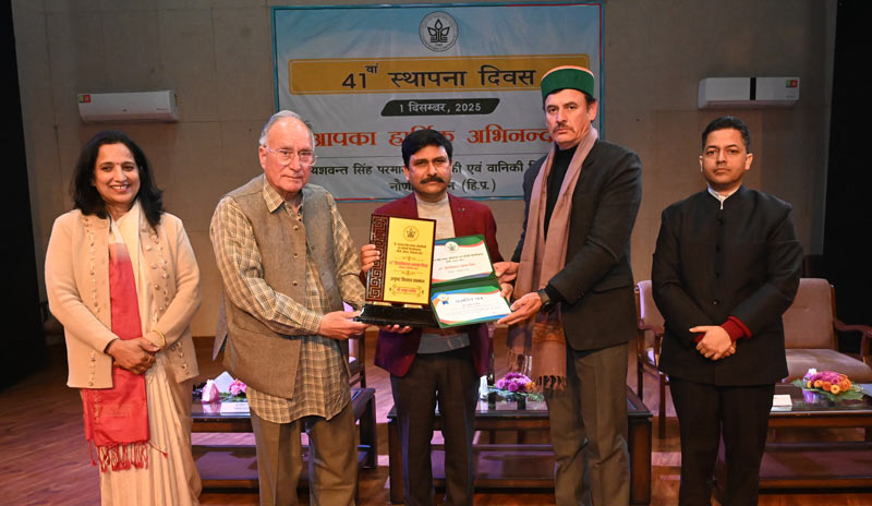 सोलन: डॉ. यशवंत सिंह परमार औद्यानिकी एवं वानिकी विश्वविद्यालय, नौणी ने सोमवार को अपना 41वां स्थापना दिवस नवाचार और फसल विविधीकरण के संकल्प के साथ मनाया। डॉ. एल.एस. नेगी सभागार में आयोजित इस समारोह में कुलपति प्रो. राजेश्वर सिंह चंदेल मुख्य अतिथि रहे, जबकि प्रसिद्ध शिक्षाविद् और सत्यानंद स्टोक्स के पौत्र डॉ. विजय कुमार स्टोक्स ने विशिष्ट अतिथि के रूप में शिरकत की। कुलसचिव सिद्धार्थ आचार्य ने अतिथियों का स्वागत किया। अपने संबोधन में प्रो. चंदेल ने डॉ. यशवंत सिंह परमार की दूरदर्शी सोच को नमन करते हुए कहा कि वैज्ञानिकों और किसानों के साझा प्रयासों ने हिमाचल को बागवानी में अग्रणी बनाया है। मुख्य वक्ता डॉ. विजय कुमार स्टोक्स ने आईआईटी कानपुर से लेकर ऐतिहासिक हार्मनी हॉल ऑर्चर्ड्स के पुनरोद्धार तक की अपनी यात्रा साझा की। उन्होंने युवा शिक्षकों को “आउट ऑफ द बॉक्स” सोचने और आर्टिफिशियल इंटेलिजेंस के दौर में अनुकूल शिक्षा अपनाने की सलाह दी। इस समारोह का मुख्य आकर्षण सम्मान समारोह रहा, जिसमें पांच प्रगतिशील किसानों को उनकी उपलब्धियों के लिए सम्मानित किया गया। इनमें कांगड़ा के कर्नल प्रकाश चंद राणा, ज्वाली के आशीष सिंह राणा, कोटगढ़ के अनूप भलैक, रोहड़ू के सनी चौहान और दिलमन के ओम प्रकाश शामिल हैं। इसके अलावा विश्वविद्यालय ने अपने उत्कृष्ट कर्मचारियों को भी सम्मानित किया। शिक्षण श्रेणी में डॉ. सुभाष चंद वर्मा और डॉ. नवीन शर्मा को पुरस्कार मिला। गैर-शिक्षक वर्ग में राजीव शर्मा और राकेश महेव, तकनीकी वर्ग में गनदेव ठाकुर और अशोक वर्मा, तथा सहायक स्टाफ में तारा चंद और मोहन लाल को सम्मानित किया गया। संबद्ध स्टाफ से सुचेत अत्री और विनोद शर्मा, जबकि स्वच्छता सेवाओं के लिए मीरा शर्मा और ओम प्रकाश को सम्मान मिला। इस कार्यक्रम के अंत में शिक्षकों और गैर-शिक्षण कर्मचारियों के बीच एक रोमांचक वॉलीबॉल मैच भी खेला गया, जिसे गैर-शिक्षण कर्मचारियों की टीम ने जीत लिया।